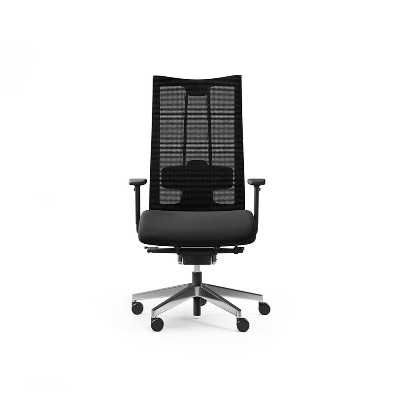Action is an office armchair, which at the same time ensures comfort and optimal body position, with a load capacity of up to 150 kg, confirmed by the GS certificate! The chair is characterized by an exceptionally ergonomic character thanks to the possibility of smooth adjustment of the angle of the seat and backrest, thanks to the adjustable support of the lumbar spine and adjustable armrests. The distinguishing element of the model is the wide, multi-adjustable headrest, which provides solid support for the neck and head. The unique form of the armchair is emphasized by the aluminium elements supporting the backrest, giving it a slightly industrial look.