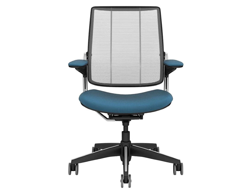 The Diffrient Smart chair is an intelligent mesh task chair with a striking linear aesthetic that complements any environment. Engineered to provide automatic lumbar support for every user, as well as simplicity and ease of use, Diffrient Smart offers comfort, style and flexibility. Like Humanscale's Liberty and Diffrient World chairs, uses Humanscale's revolutionary Form-Sensing Mesh Technology and mechanism-free recline for perfect support for every user.