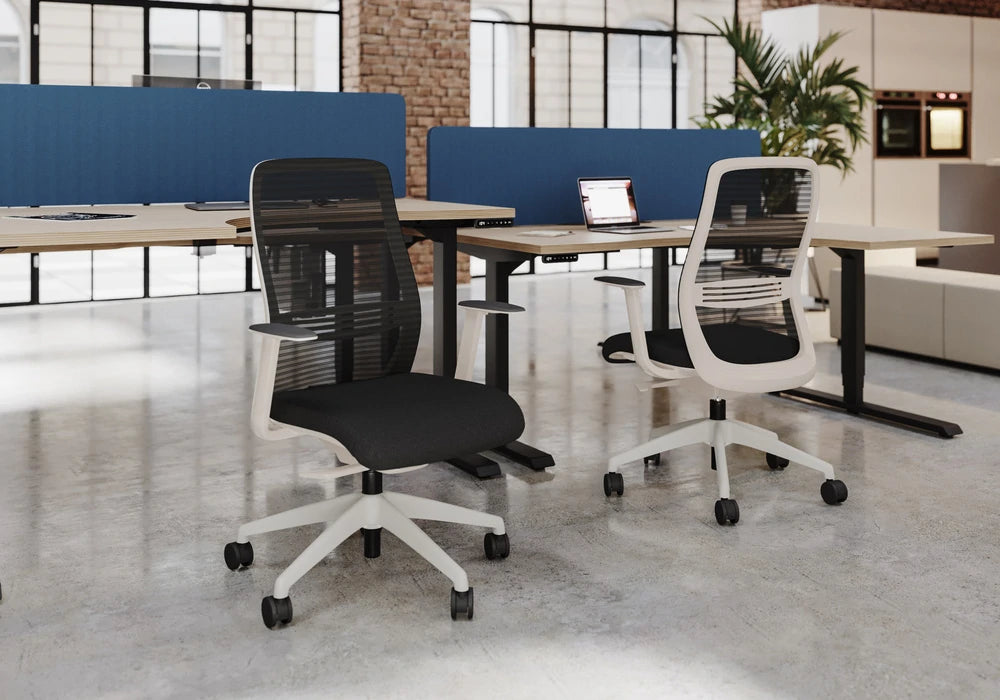 Upgrade your home office with our Ergonomic Furniture Bundle. It includes a Oak Sit Stand Desk and a Black Posture Chair with Adjustable Arms. The desk offers effortless height adjustment, promoting better posture and productivity. The chair provides lumbar support and adjustable arms for maximum comfort. Experience a stylish and comfortable workspace. Order now for a more productive work-from-home experience.