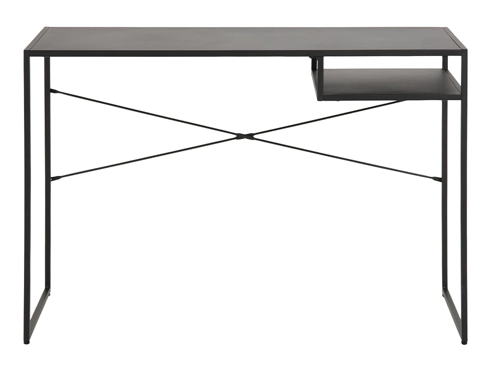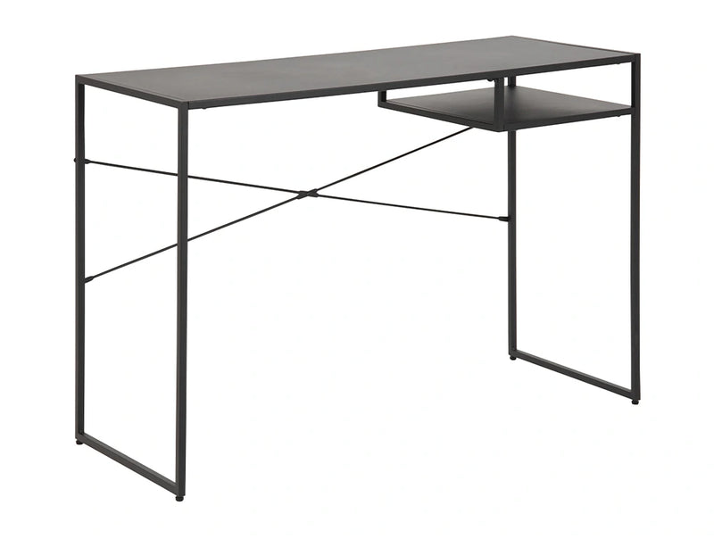 Transform your home office with this industrial desk, where functionality meets style. Enjoy a more enjoyable work-from-home experience as you surround yourself with stylish furniture. This minimalistic desk brings both form and function, allowing you to work in style. The shelf underneath ensures that all your necessities are kept safe and within reach. Elevate your workspace and get the job done with ease and flair.