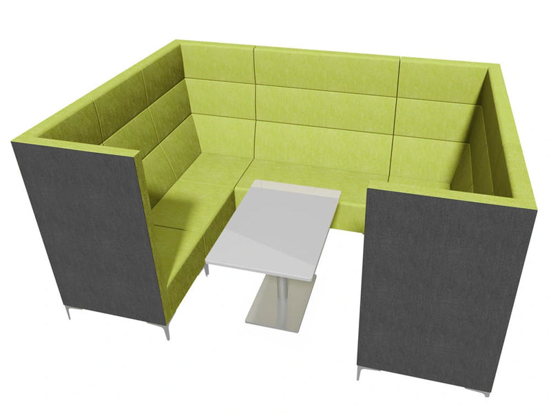 This rectangular shaped meeting pod is modular in design allowing for endless possibilities of layouts. The office pod has deep foam padding available in a wide range of fabrics and colour finishes with chrome or black legs.