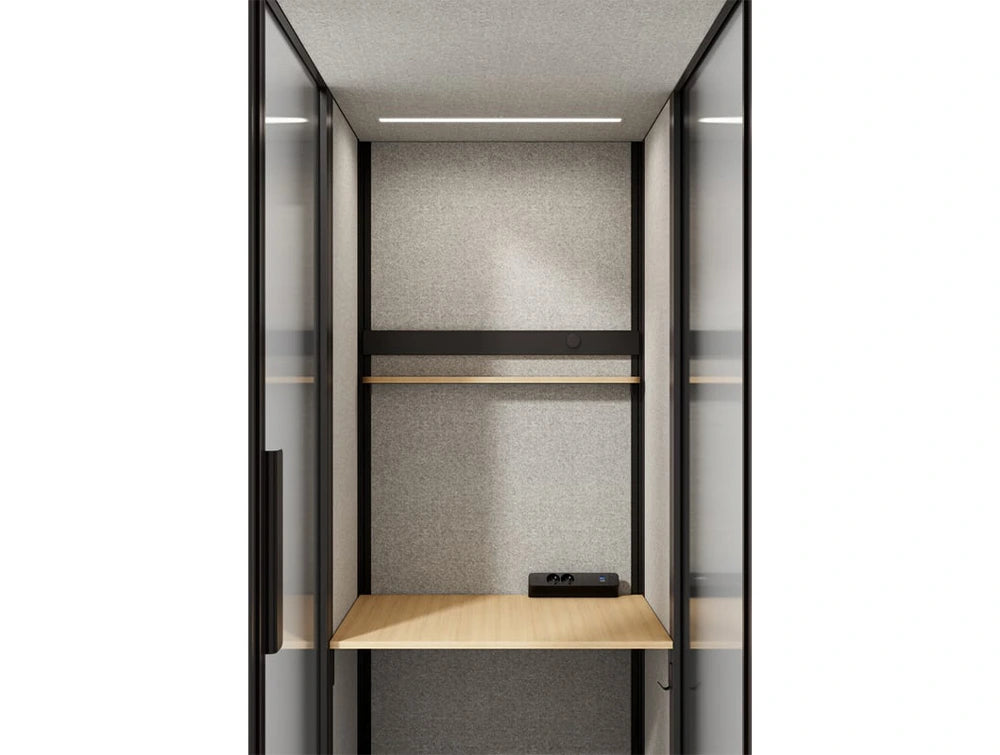 A solo pod designed to maximise concentration, offering high B-class sound insulation and effective ventilation with 365 m³/h airflow. The Jetson M1 features a wide, ergonomic work desk and spacious interior, ideal for installing a full-size office chair. The most earth-friendly acoustic pod on the market