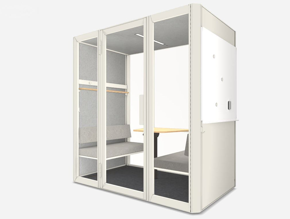 An acoustic oasis for one. Step inside for a quick call, video meeting, or deep work session to come up with the next big idea. Use extra add-on sets for even more functionality. Add bookshelves or a whiteboard anywhere and at any height, inside or out. Your office needs a slight refreshment? Simply reconfigure your add-ons. Its walls can be either black or white, but Jetson is always green at its core. Several innovations make it the most earth-friendly pod on the market.