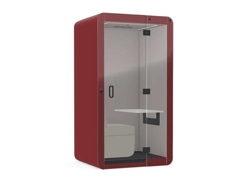 Penelope is a fully upholstered phonebooth ideal for calls where privacy and focus are essential. Power and data can be added to charge phones and laptops. There are various standard and optional extras with the phone booth or work booth products. Can be customised with various fabrics. Optional perch and power outlet available.