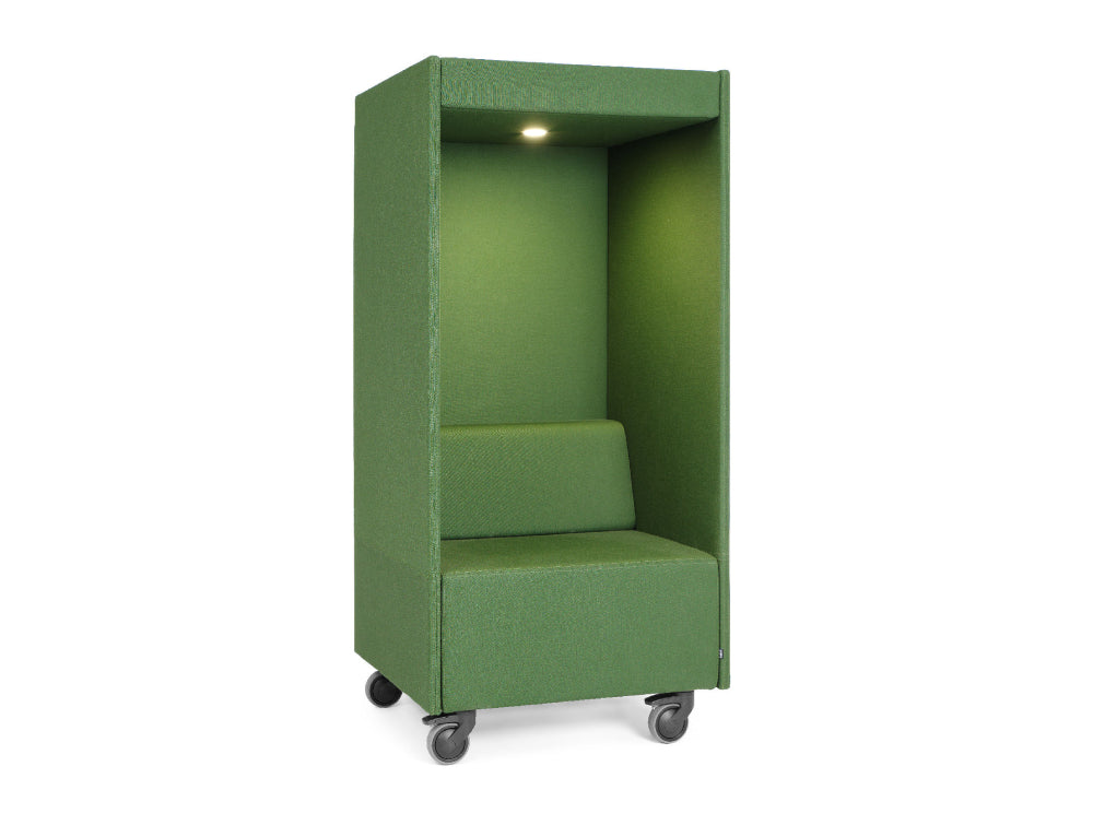 Provides a comfortable and private space for making phone calls. It was designed with noisy offices in mind, where silence and privacy are highly valued. Thanks to acoustic walls that provide effective sound isolation, conversations can be conducted without any disturbances. Quadra phonebox is available in two versions: mobile (on wheels) and static (on a metal sled, matching Quadra sofas). The chair also offers a wide range of customisation options through the choice of two different upholstery colours.