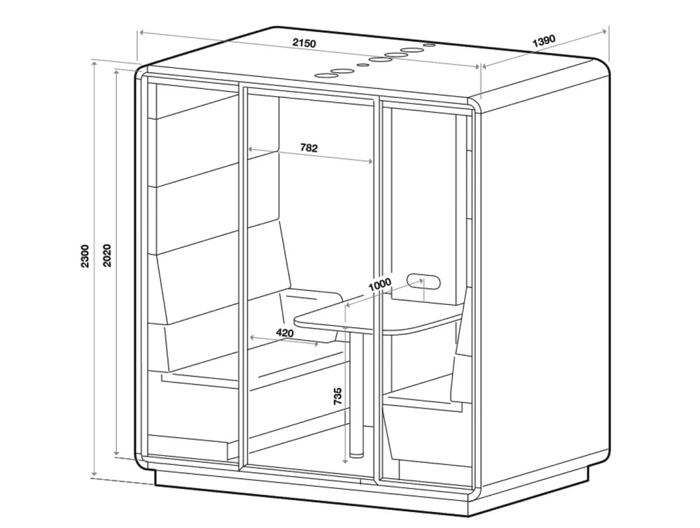 HushMeet is a large meeting booth made by conjoined modules. A team can simply add or remove these modules to expand or scale down the pod and modify their layout without creating any waste, disruption, or cost all within one workday. HushMeet meeting pod has been created for change, so it adapts by design!